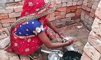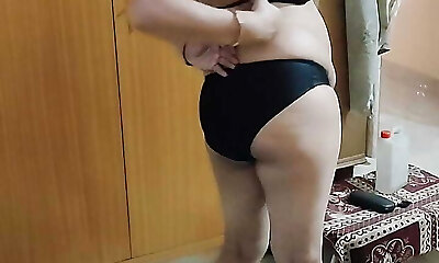 While the Desi stepmom washes bra & panties, stepmom took off the son-in-law's trousers and Bare him, Then asks him to fuck her - Cum
